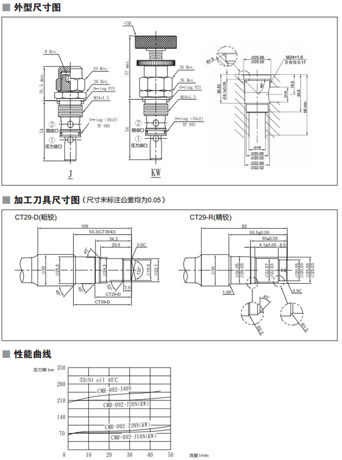 CMR-092-J10N,CMR-092-J20N,CMR-092-J40N,CMR-092-KW10N,CMR-092-KW20N,CMR-092-KW40N,螺紋插裝式直動式溢流閥
