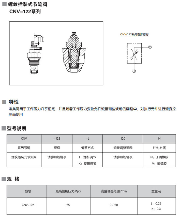 CNV-122-L120N,CNV-122-L120V,CNV-122-K120N,CNV-122-K120V,螺紋插裝式節(jié)流閥