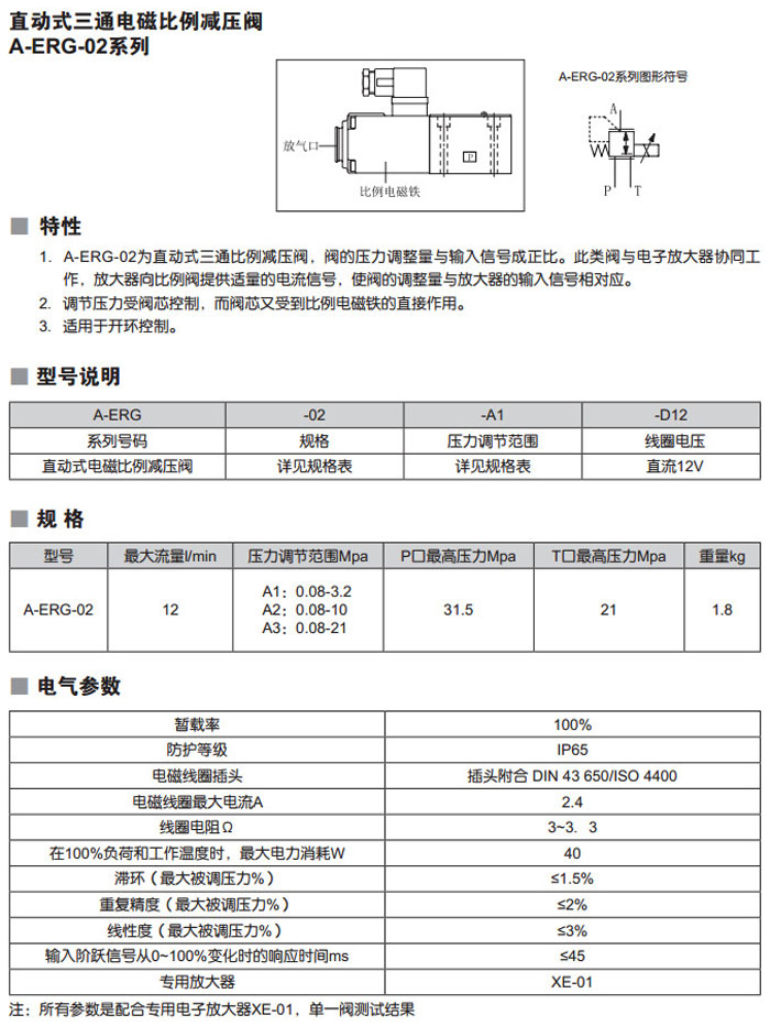 A-ERG-02-A1-D12,A-ERG-02-A2-D12,A-ERG-02-A3-D12,直動式三通電磁比例減壓閥