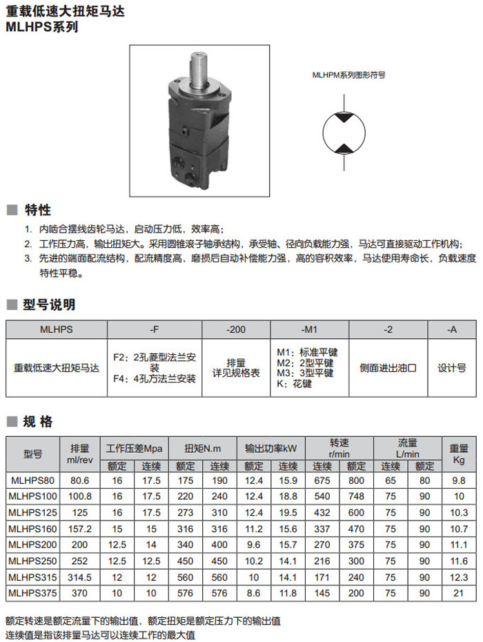 MLHPS-F4-80,MLHPS-F4-100,MLHPS-F4-125,MLHPS-F4-160,MLHPS-F4-200,MLHPS-F4-250,MLHPS-F4-315,MLHPS-F4-375,重載低速大扭矩馬達