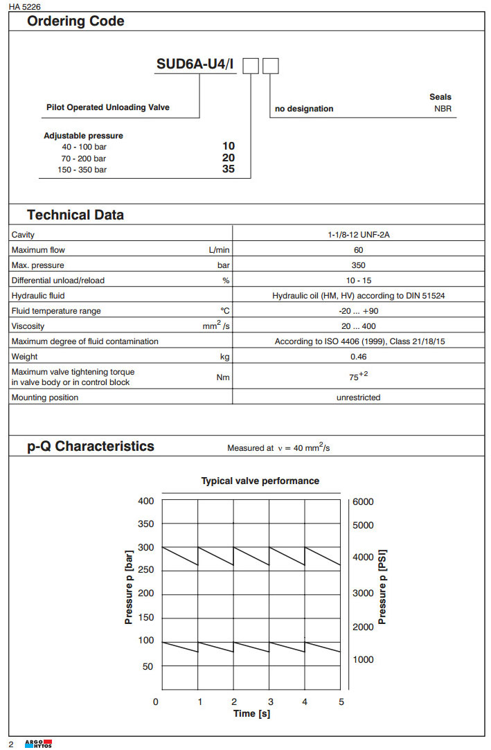 SUD6A-U4/I10,SUD6A-U4/I20,SUD6A-U4/I35,ARGO先導(dǎo)優(yōu)先卸荷閥