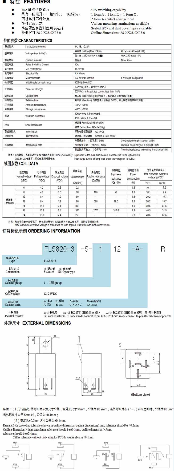 FLS820-2,汽車繼電器