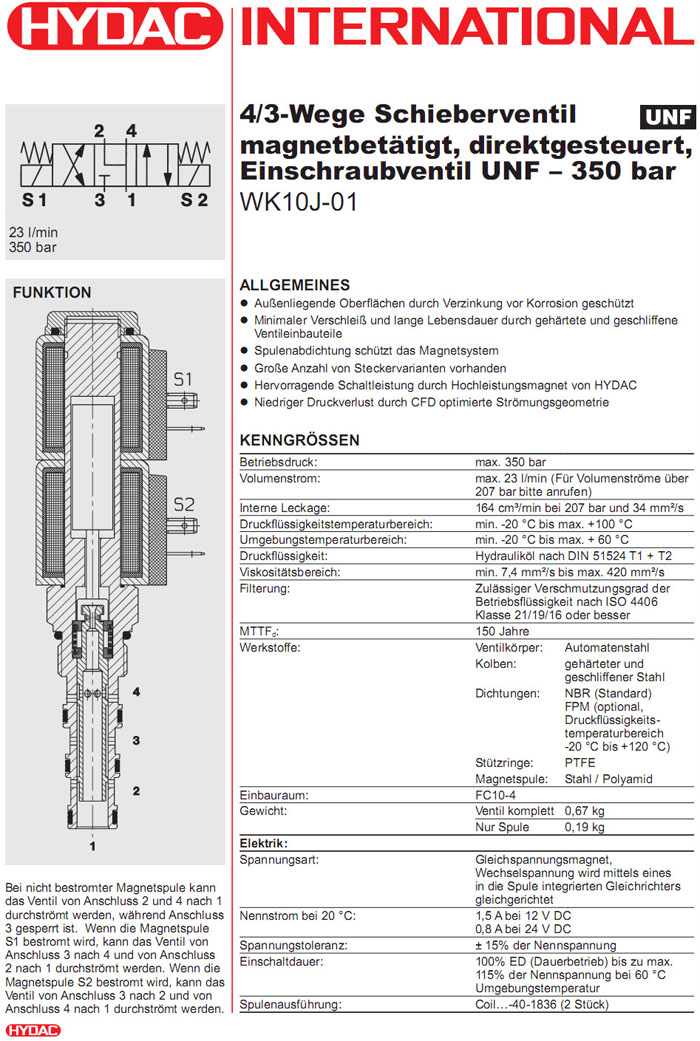 WK10J-01M-C-N-24DG,WK10J-01A-C-N-230AG,HYDAC電磁4/3方向滑閥
