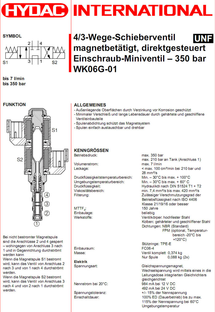 WK06G-01-C-N-0,WK06G-01M-C-N-0,WK06G-01A-C-N-0,HYDAC電磁4/3方向滑閥
