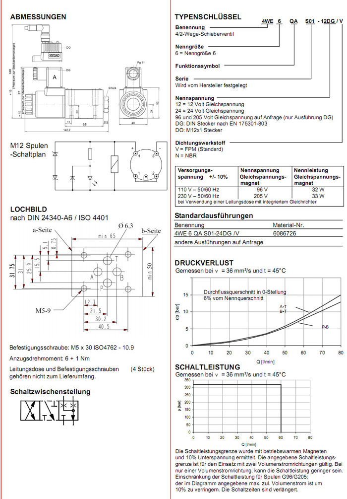 4WE6QAS01-12DG/V,4WE6QAS01-24DG/V,