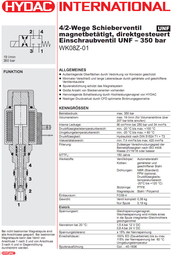 WK08Z-01-C-N-24DG,WK08Z-01-C-N-230AG,HYDAC電磁4/2方向滑閥